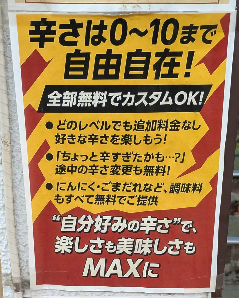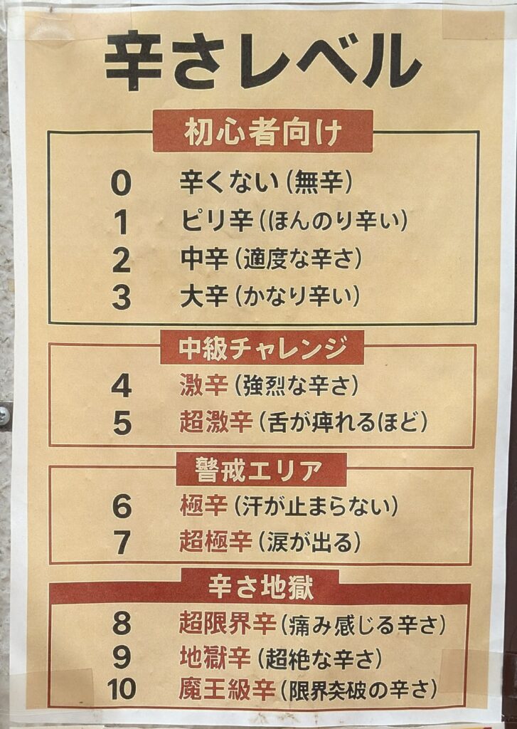 辛さは0から10まで11段階あり、その中から選べます。