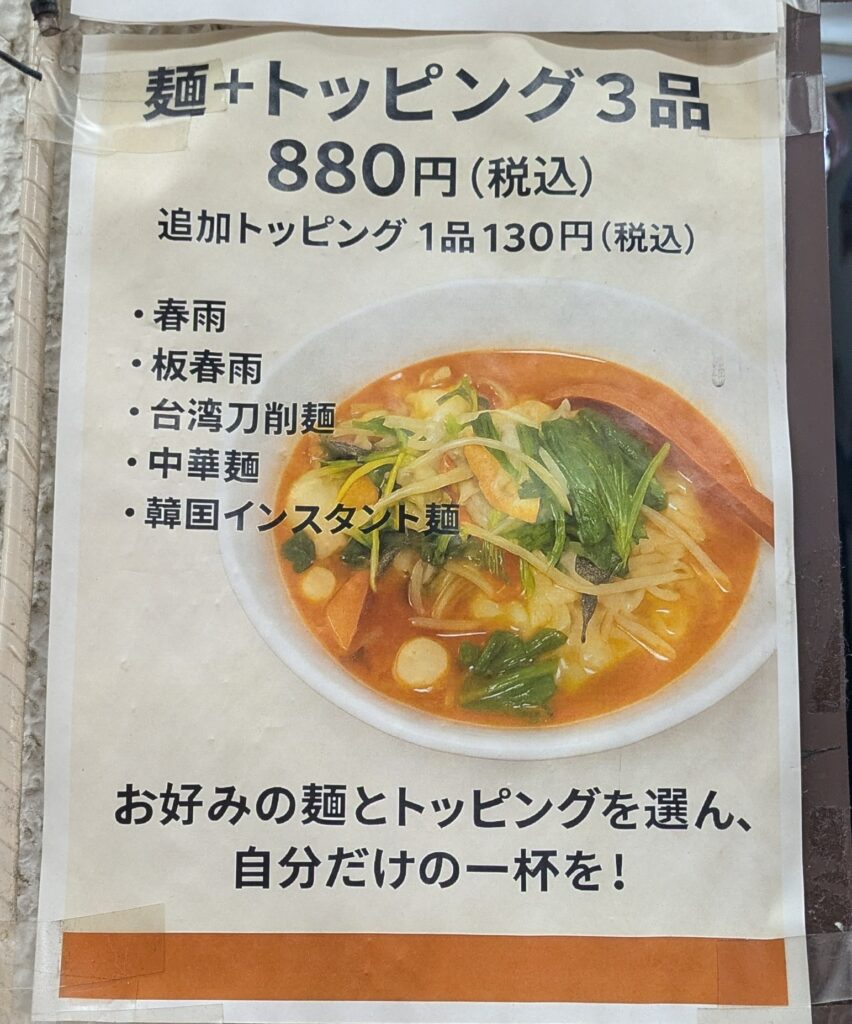 麺+トッピング3品  880円
