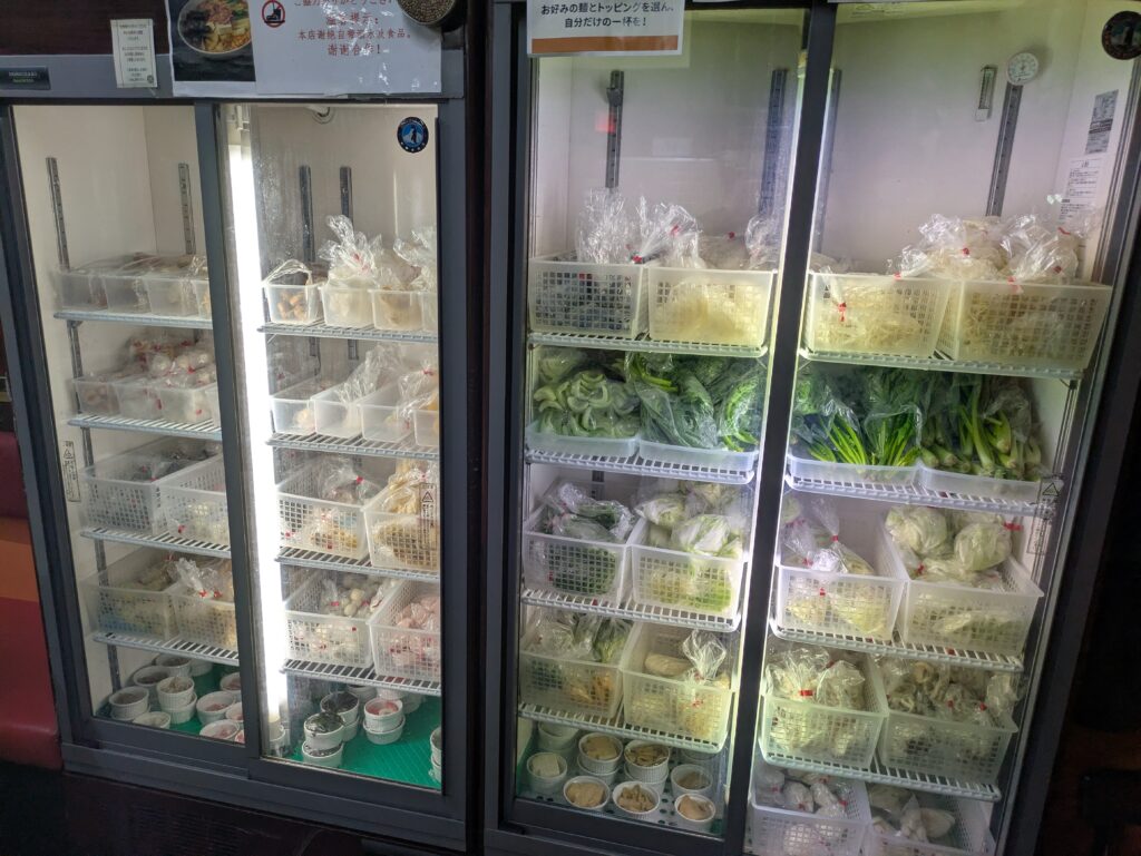 店の奥に食品が入った冷蔵庫があるので、そこから具材をボールに取ります。