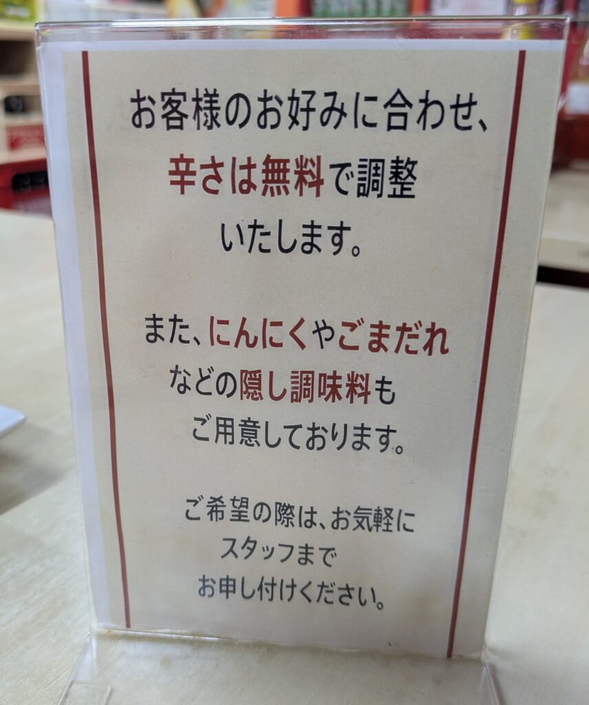 食べ始めてからも辛さの調整ができます。(私はしませんでしたが)