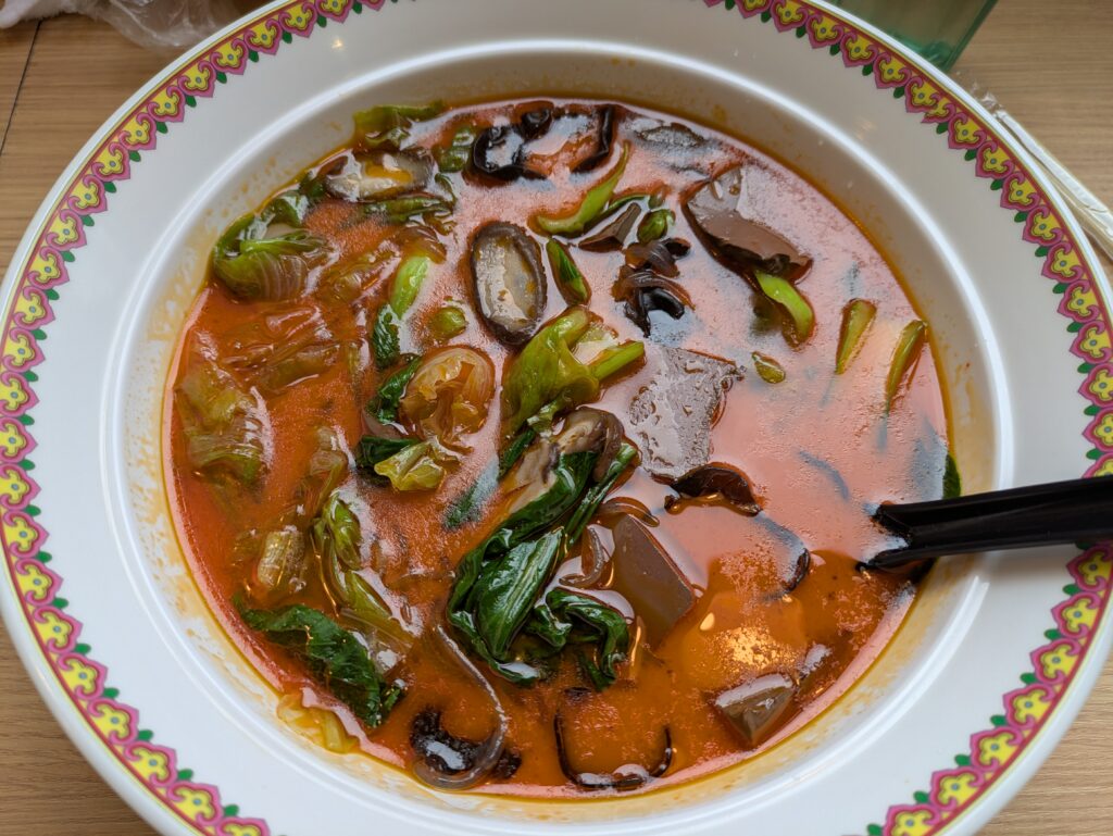 いつも結構同じになってしまうのですが、レタス、ほうれん草、しいたけ、鸭血(血を固めたもの)などを取りました。