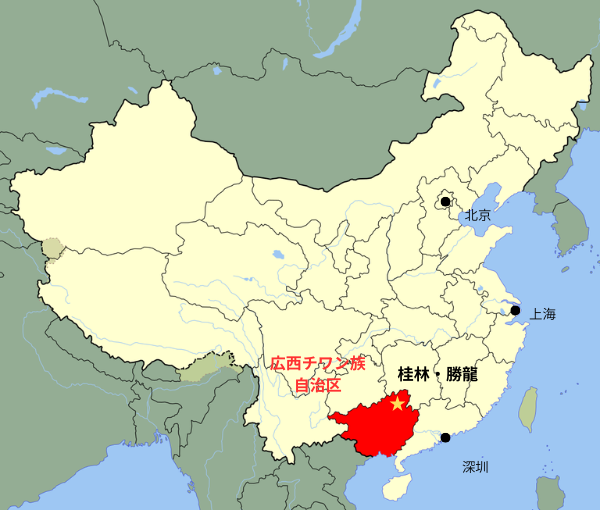 場所は中国の南の方にある広西チワン族自治区の中にあります。
