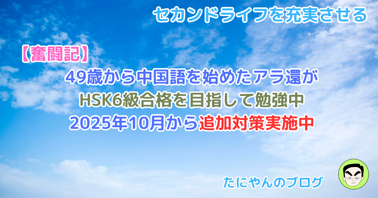 【奮闘記】49歳から中国語を始めたアラ還がHSK6級合格を目指して勉強中|2025年10月から追加対策実施中