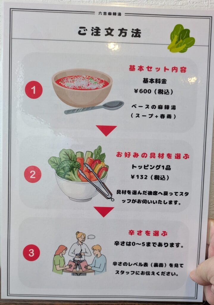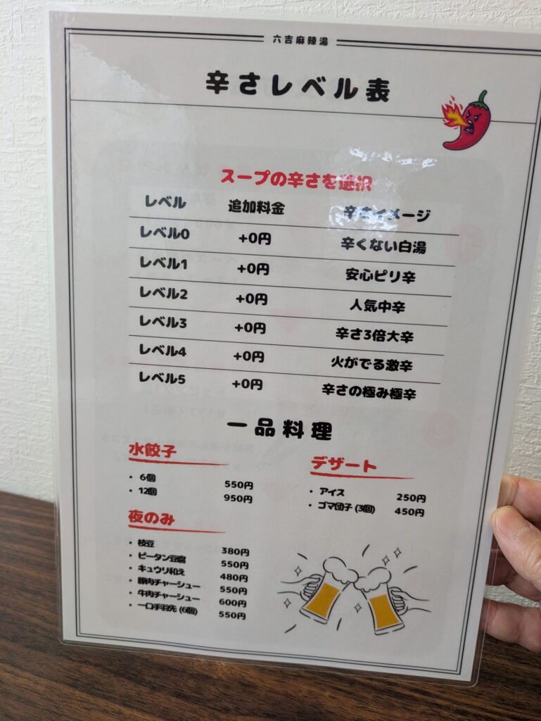 店の表にはレベル4以上は追加料金と書いていましたが、店内メニューには全部無料となっていました。