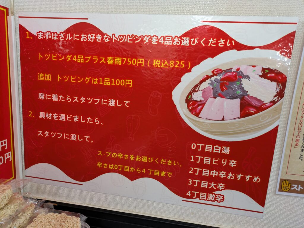 麺は春雨しかないので、次は辛さを選びます