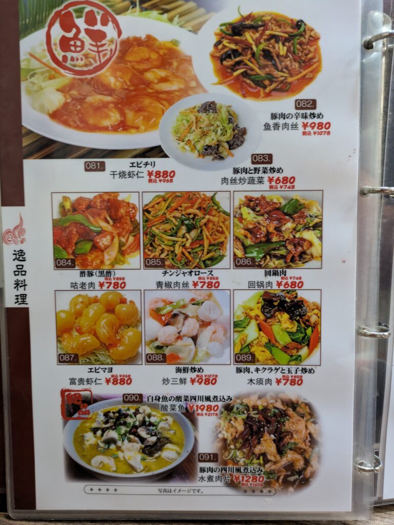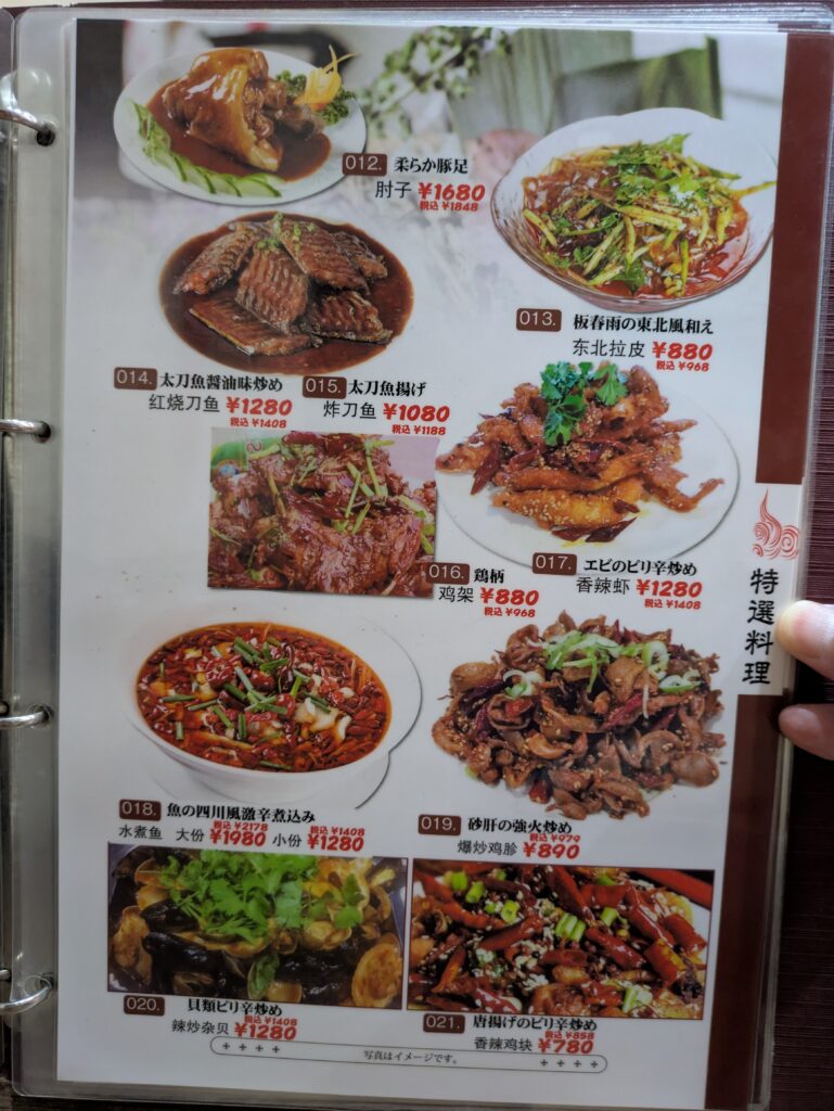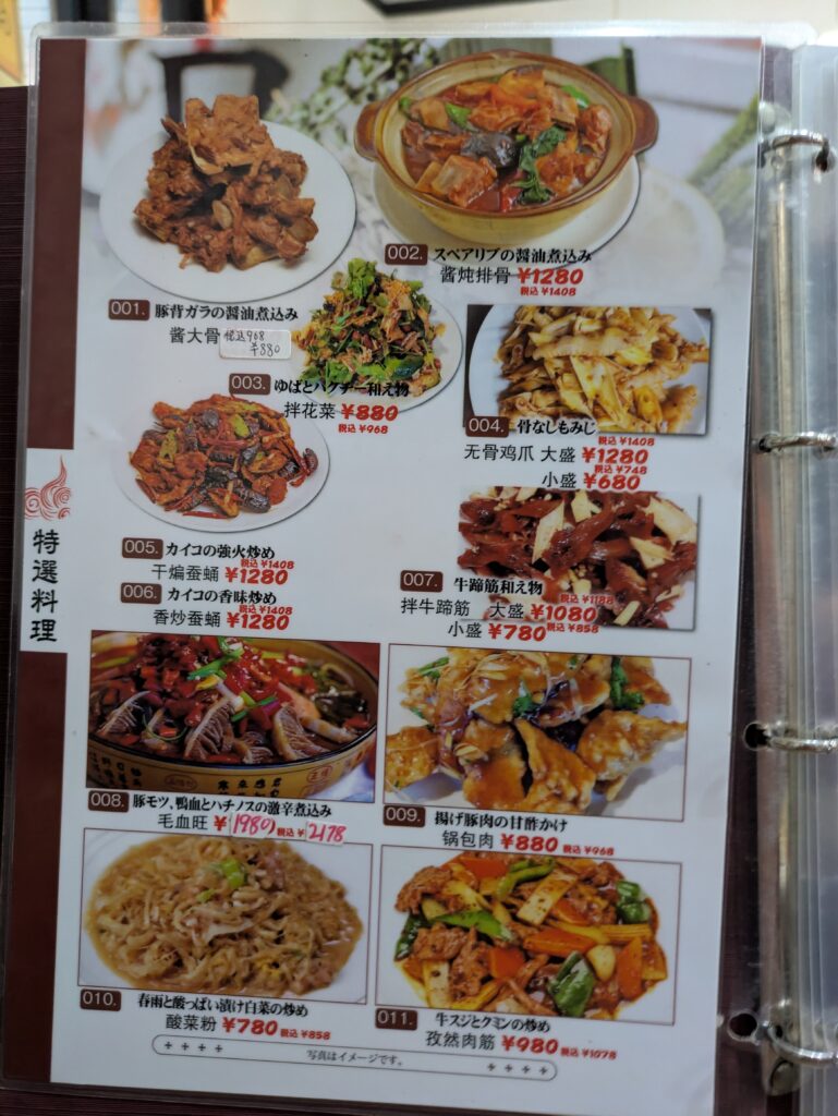 メニューはたくさんあったので、全部写真で紹介できませんが、四川料理を中心に本格中華料理が沢山ありそうですので、好きな方は一度いかれてみてはどうでしょうか?