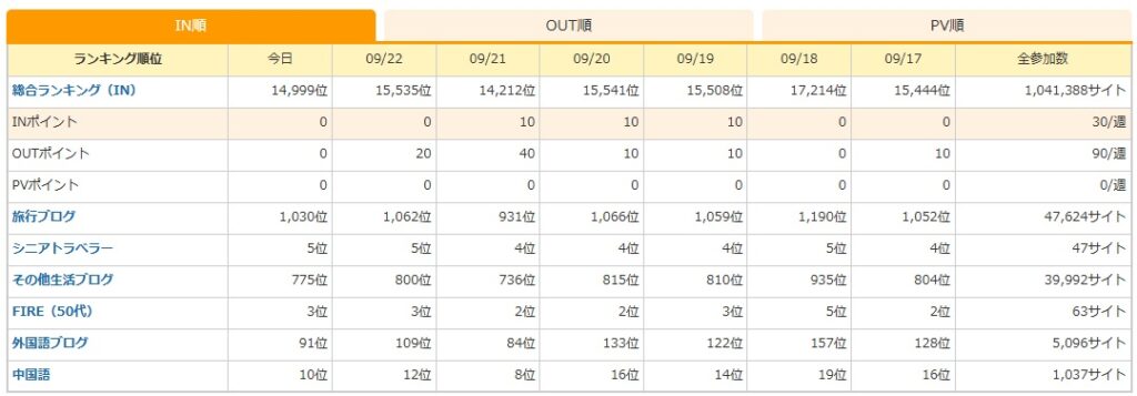 もう一方の「ブログランキング」の方ですが、こちらはしばらく投稿しなくても、そんなにランキング変動はありません。