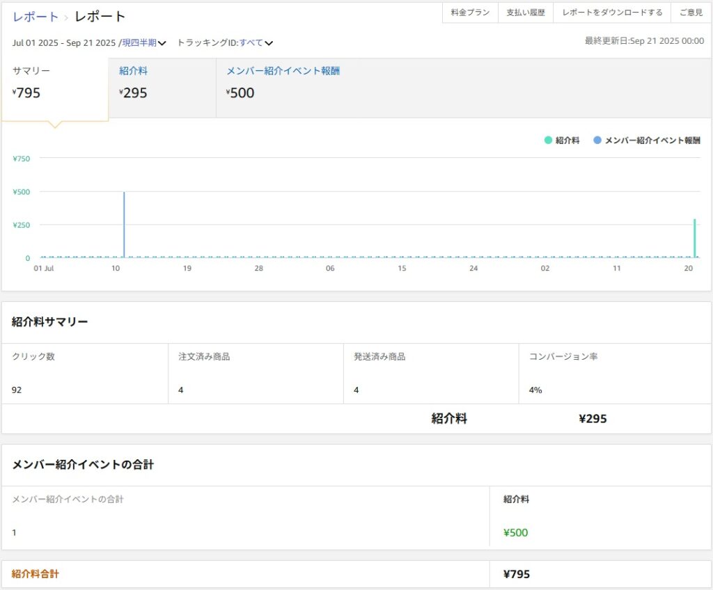 • Amazonアソシエイトで1件だけ紹介料(500円)頂きました。