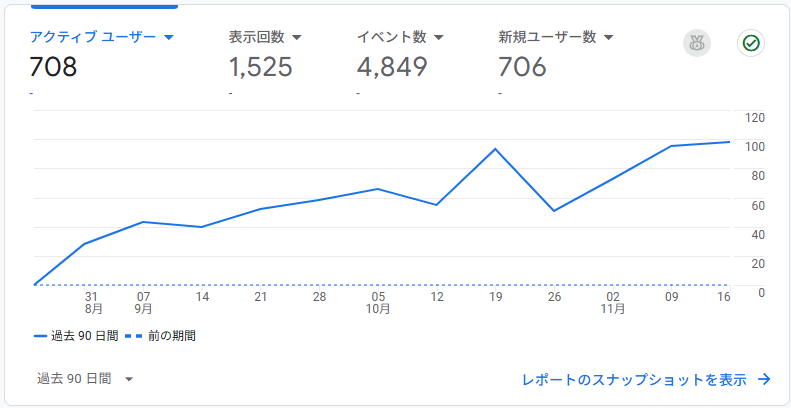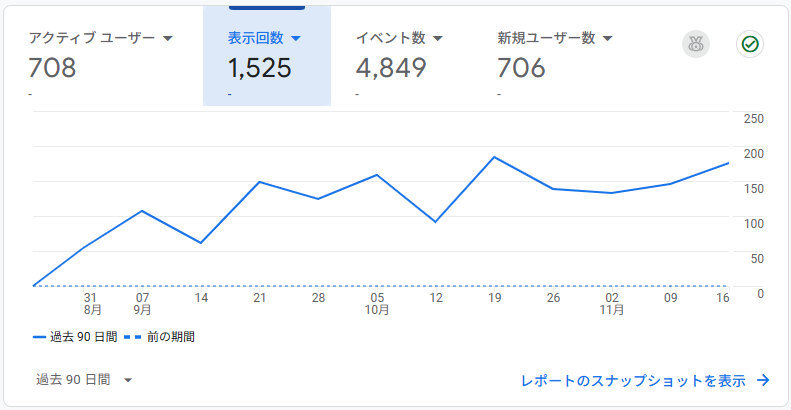 表示回数の方も増えていますが、最近自分が見ても増えてしまう事に気が付いてしまったので、ユーザーの数字を見て置くのが良いのかなぁ、なんて思っています。