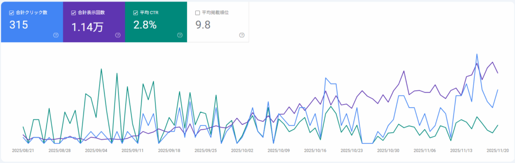 検索パフォーマンスを見ると先月と比べても増加傾向にあります。
