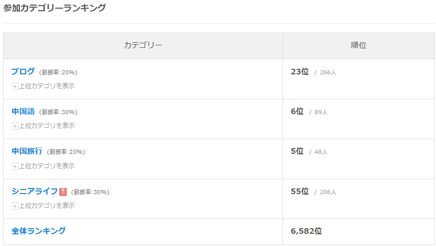 現在の各カテゴリーのランキングは下記です。