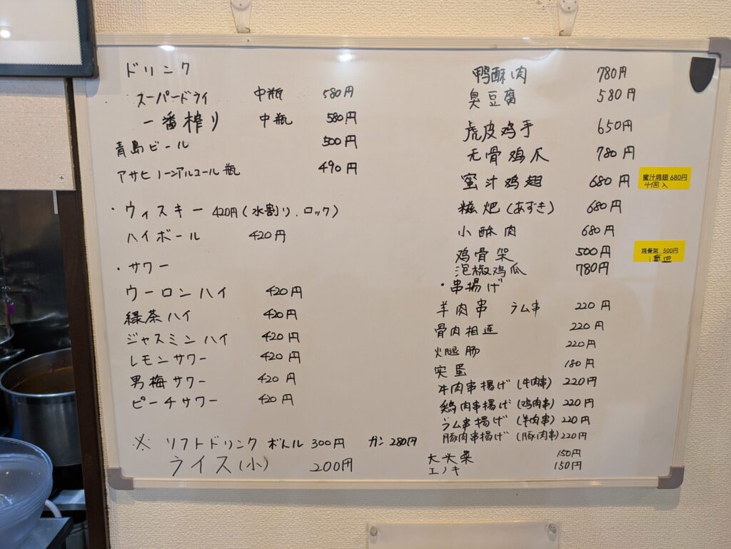 他のメニューもホワイトボードに載ってました。