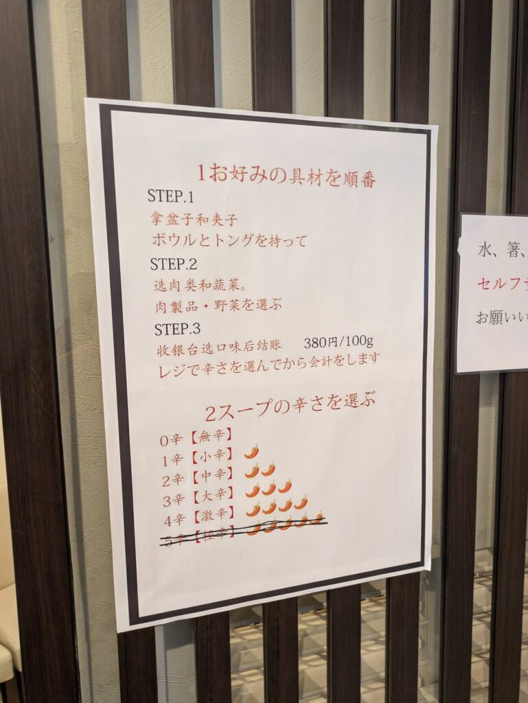 麻辣湯注文とメニュー