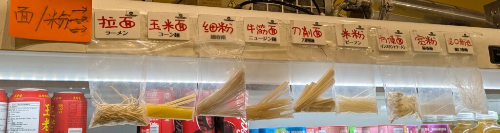 麺は棚の上の方にサンプルがありますので、ここで見て注文します。