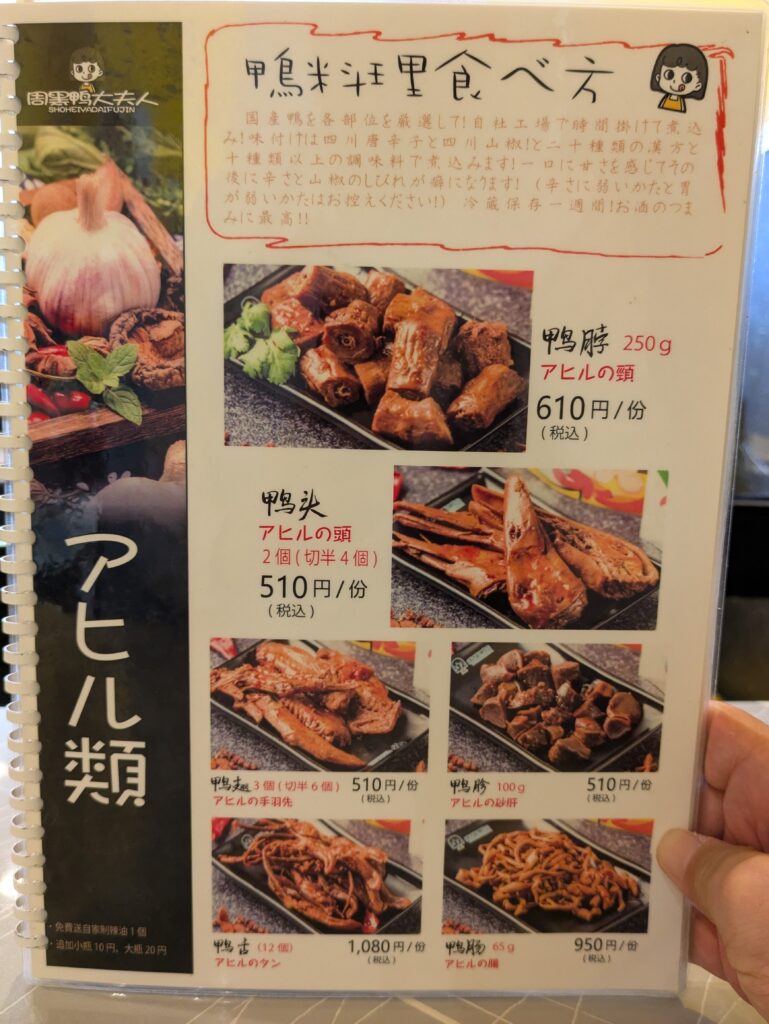 もともとピリ辛鴨料理の専門店ですので、麻辣湯以外にもたくさんメニューがありました。